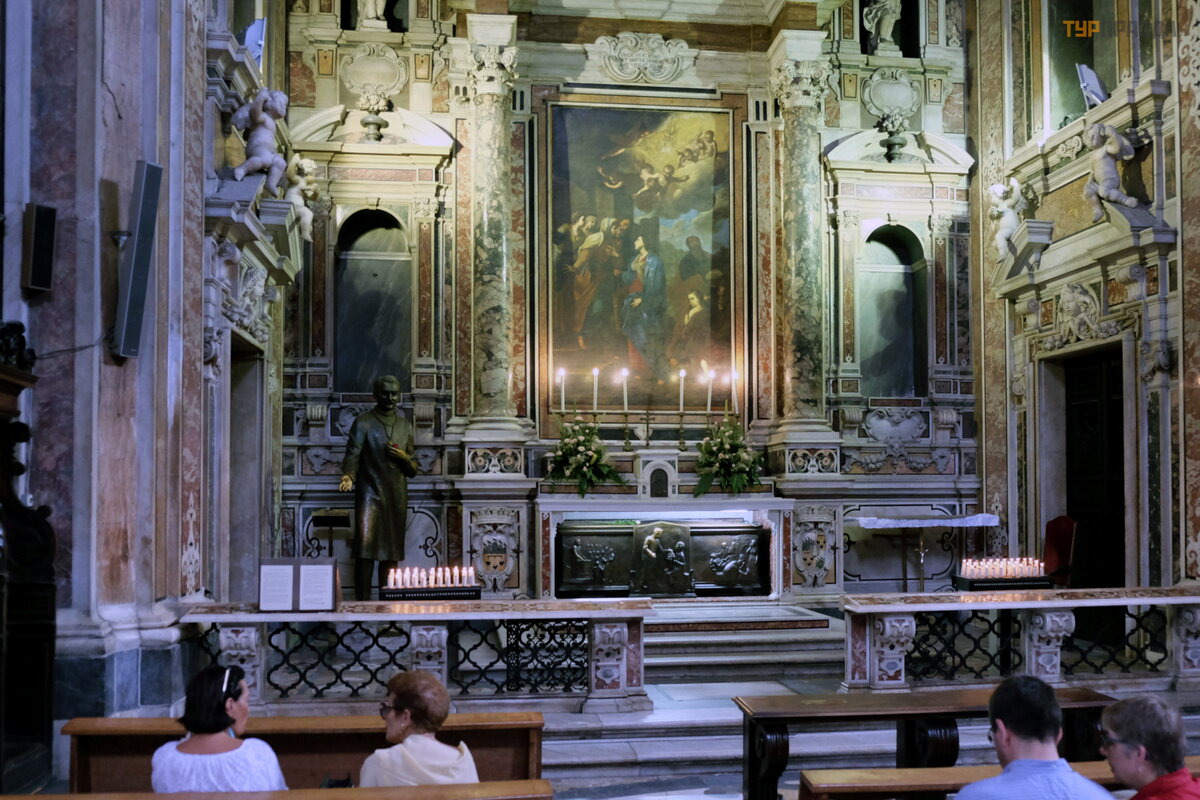 In the second chapel on the right lie the remains of St. Giuseppe Moscati (1880-1927), a Neapolitan doctor without silver, canonized in 1987.