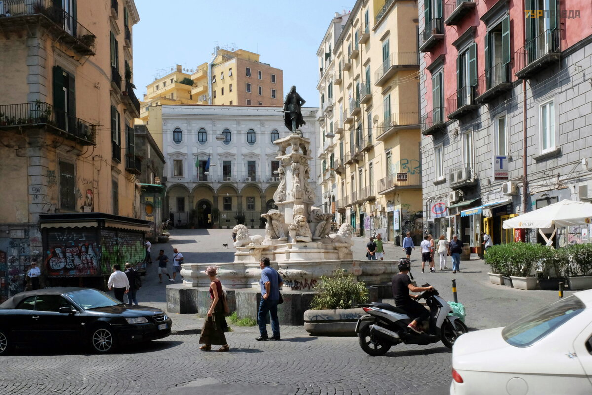 . . . then we will go out to the beautiful square Monteolivetowith a fountain in the center, designed by Cosimo Fandzago (1671-1673). The bronze statue of King Charles II of Spain is the main part of the fountain.