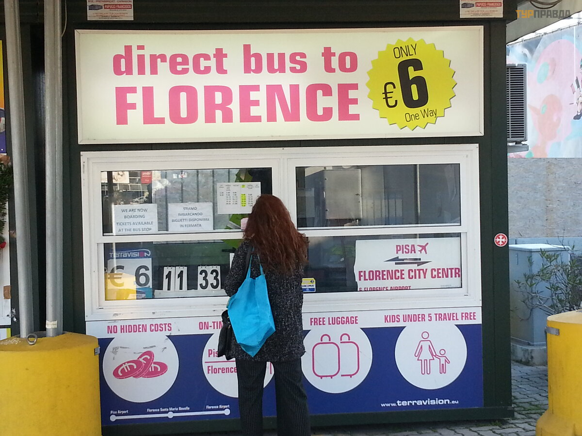 Now, if it were not for the phrase "fully automated train", we would not even consider any type of transport, but would go on foot. And here it was already paid - I had to go by bus. It does not deliver to the station building, it stops on the opposite side across the tracks. The passage is underground, so you don’t have to jump along the tracks. This is what I mean, if you suddenly need to go straight from the airport to Florence, then it’s easier on the bus that departs directly from the airport and for only 6 euros.