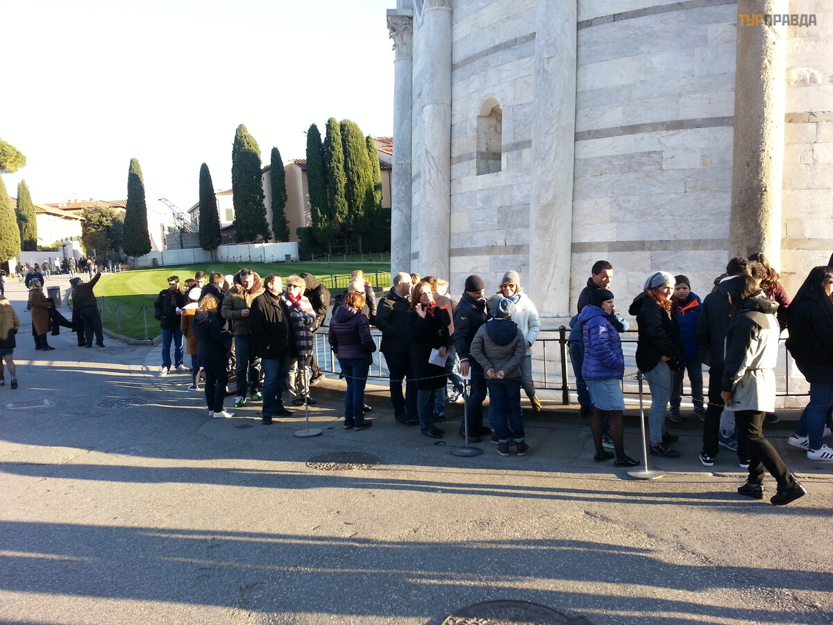 Pisa is not a big town. We arrived at about 12 o'clock local time, and at 15.30 we bought tickets for the Leaning Tower of Pisa. During this time, we managed to hang out at the airport, and study the railway station, look into a couple of shops, have a bite, looking around to get to the hotel.