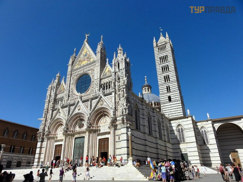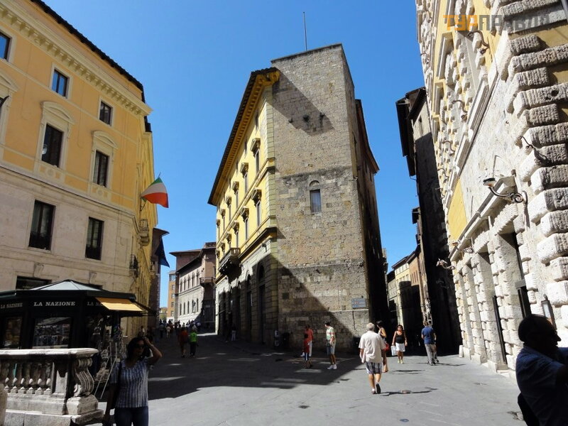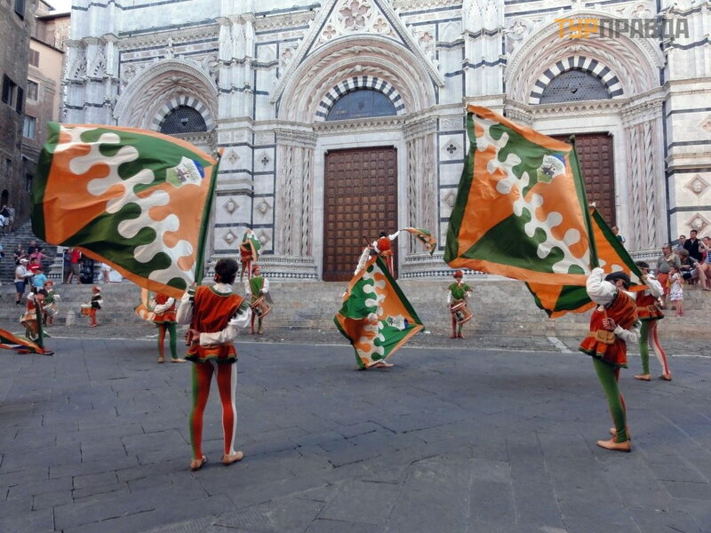 The guide, a young, loud-mouthed Italian Daniela, who speaks good Russian, told the history of the city in sufficient detail, about the original division into districts - contradas, about animals - the symbols of each district, about annual races.