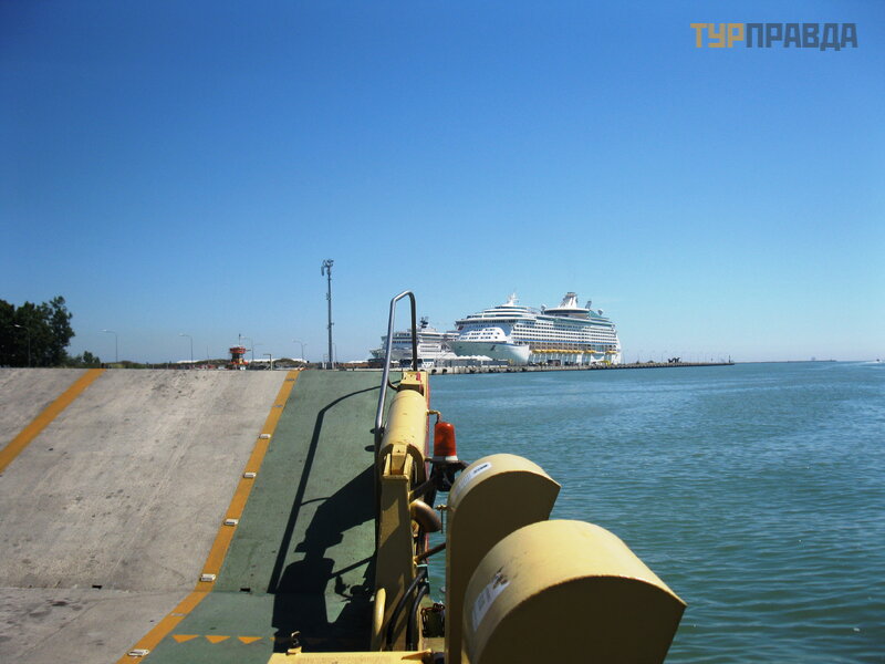 So a group of independent tourists got off the ship and went to look for a transfer to Ravenna, because it is about 20 km away. Someone grabbed a taxi for $ 20, we got to the ferry, which was ferried across the canal,