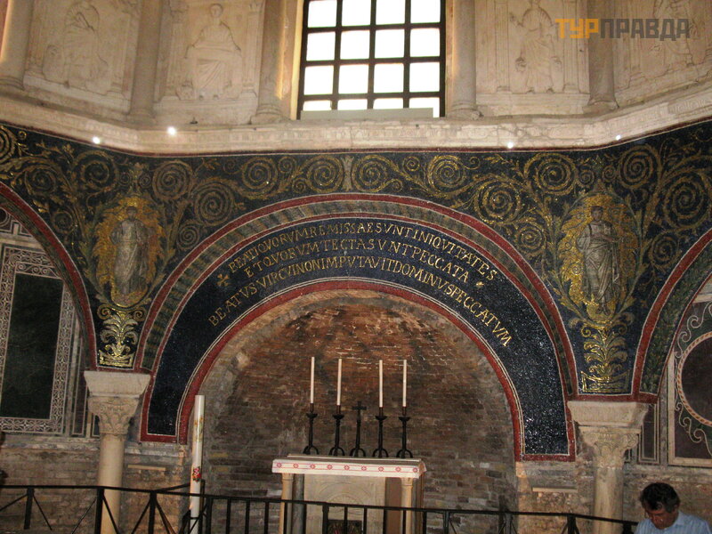Across the road you can see a real monument of the 5th century - the mausoleum of Galla Placidia, a Roman princess. And although most historians are sure that the ashes of Galla are not here, this makes the appearance of the structure no less impressive. A single ticket to the Basilica of San Vitale, the mausoleum of Galla Placidia, the Baptistery of the Orthodox, the museum in the Archbishop's Palace and the Basilica of Sant'Apollinare Nuovo costs 10.50 euros.