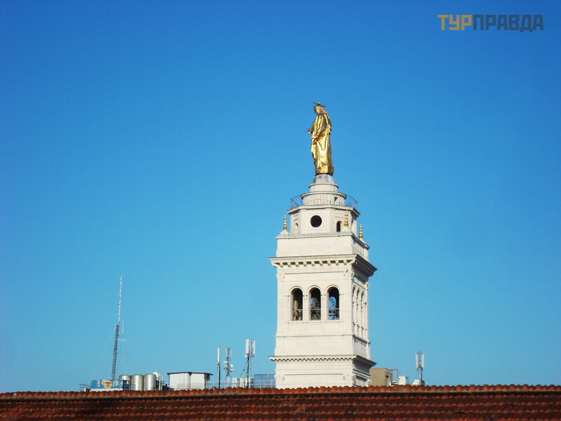 The next day started with a standard European breakfast. We went up to our "birdhouse" on the sixth floor, but cozy and comfortable, I open the shutters and in front of me is a view - the roofs and the gilded figure of the saint illuminated by the rising sun on one of the churches.
