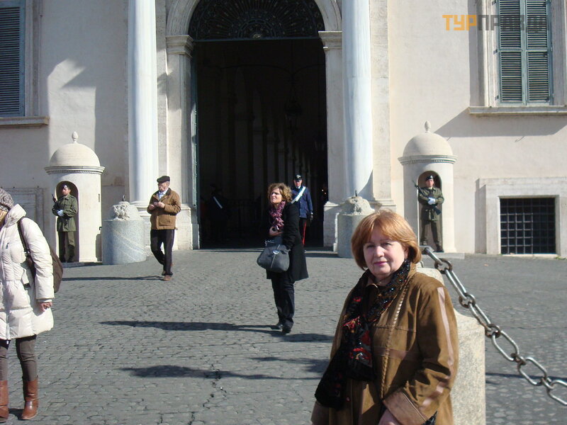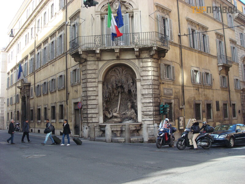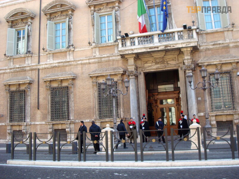 In the morning we decide that we will go anyway, we will rent the temple where dad spoke. I really liked the architecture there. Of course, I did not hope that there would be some kind of radiance from the visit of the pope, but... there is no longer access to where we sat on the benches in the morning (fence). I am proud now that I was where no tourist has gone before, and I went with my dad. We went out again to the obelisk, I hear Russian speech, I ask the guide about that ill-fated stop, he answers - over there, opposite the shadow from the obelisk, points with his finger. Again pride! None of the Italians could indicate it, but the Russian could easily, and even figuratively. True, yesterday it was already too late and this shadow simply did not exist. In short, we got on this 81 bus (here you still need to know the direction, otherwise it will take you to the wrong place), we skip the Colosseum, Palatine Hill, we don’t get out, since everything is visible from the bus window - ancient Roman temples, in the same church - the mouth of truth. We drive to the building of the upper house of the Italian Parliament (Palazzo Madama).