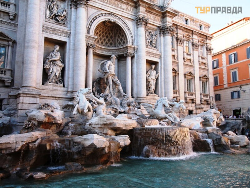 We go down to the right of the observation deck barrier and go to the Trevi Fountain. The fountain has been featured in many films, in many magazines and guidebooks, but... it's beautiful.