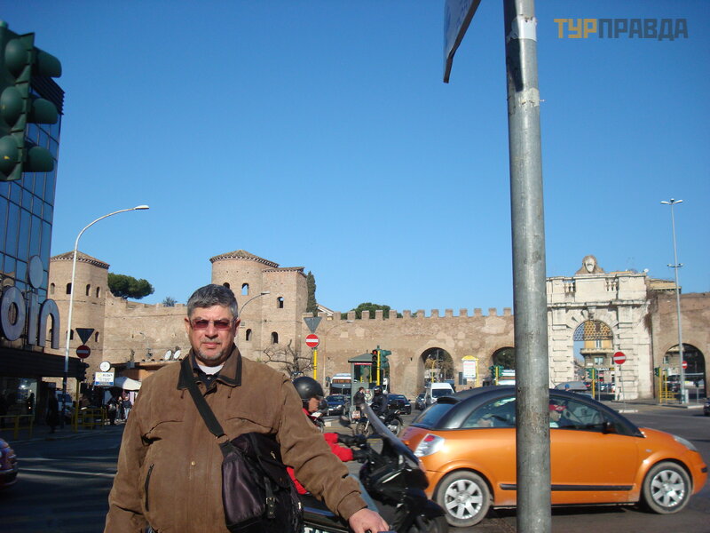 A short break without drowsiness, we are planning the next route with a visit to the Roman Metro and towards San Giovanni, where the beginning of the Via Appia and there is the Church of San Giovanni. The camera remains at home, so there is no photo of the Roman metro, but I was in the Moscow, Barcelona, Leningrad, Kiev metros, and I have not seen a worse metro. They say that it is difficult to lay it there, but it looks like a homeless man. We get off at the bus stop, pass through the Apian Gate (the remains of an ancient Roman wall).