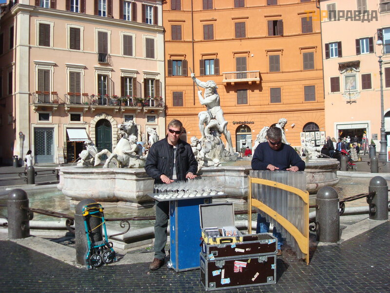 On the square there is an ancient Egyptian obelisk, which is 3500 years old, exactly like I saw in Luxor in the Karnati temple. Almost every temple has obelisks similar to this one, so how many of them were taken out and how many were copied. The question is certainly interesting. Next, we plan to take bus 81 to the most beautiful square in Rome, Piazza Navona, but no one I ask, no one knows the stop of this route, even the carabinieri, who drove the Arab merchants from the temple. I think that my English-Russian language with a Zaporozhye accent was to blame. I confess, I did not use obscene language, sign language and the available map also did not help. Down the street we saw the ruins of the Colosseum in the distance, safely reached it. It was already too late, the ruins looked illuminated. Further, a cursory inspection of the ruins of the imperial forums, a short rest for the trampled feet, and we are again on the Piazza Venezia. Well, Venice attracts me even in Rome. Already, riding the bus, I remembered that near the Colosseum in the church of San Pietro in Vincoli, in the far right corner, it was planned to inspect the sculpture of Moses by Michelangelo, and near the altar, the fetters (vincoli) of St. Peter. Broke.