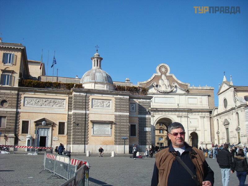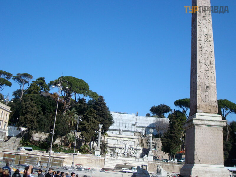 For example, the Olympic Stadium in Rome with its alley of sculptures of athletes and Italy's only stela-monument to Duce Mussolini. As a result, we got out at the metro station, saw a pizzeria, and I know that it is better to eat in a cafe where there are Italians than where there are crowds of tourists. Excellent pizza, coffee - espresso and again "feet in hand". We take the metro to Piazza del Popolo,