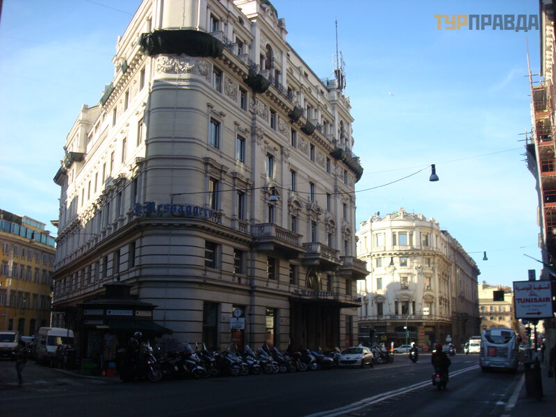 An express train from Venice has arrived at Termini station, Rome's main railway gate. Hotels were selected within walking distance from the stations and ports of the cities in which we were. The Rimini Hotel is located 50 meters from the left side exit of the Termini station, cross a narrow street, go through a shop and another hotel and we are there. The hotel corresponded to its three stars, but this suits us, since we do not intend to stay too long in it. The hotel was converted from a residential building, the elevator in it is weak (the two of us with my wife and a small suitcase did not pull).