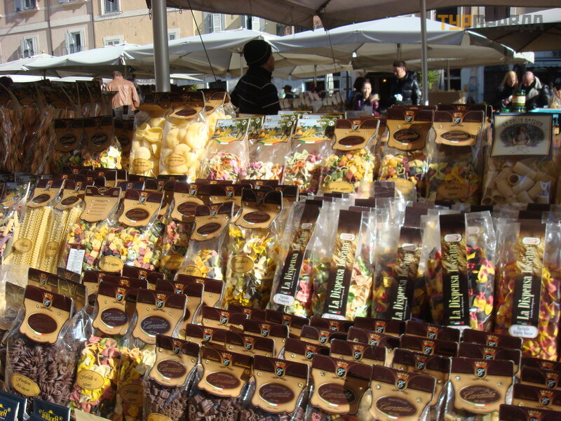 for his wife, the bazaar at Campo del Fiori with its abundance,