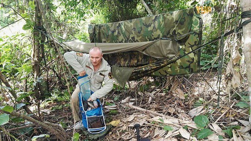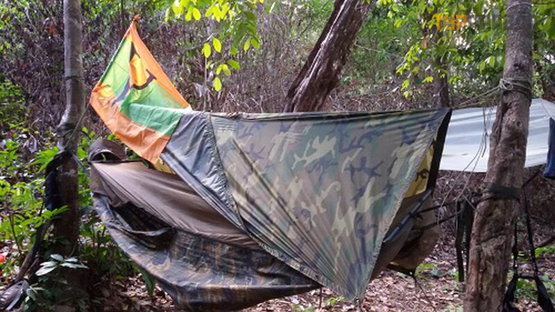 A classic of the genre: an exemplary - indicative picture (can be placed in a textbook) on organizing an overnight stay in the jungle with a hammock. We pay attention to the attachment points of the bed, mosquitoes and poncho as an awning (regular NATO, trophy), this is a multiplication table for using a hammock and poncho. In case of heavy rains and stormy gusts of wind, the attachment point of the awning should be two times lower along the trunk ...and two more storm guy lines are added to the awning. Well, and of course - do not forget that the awning is not attached to the tree by the eyelets - it is only pulled through them along the rope stretched between the trees.