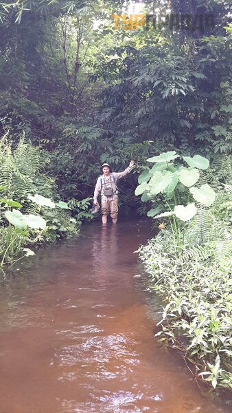 Fording the first water obstacle - a very picturesque, classic jungle stream with milky-warm water.