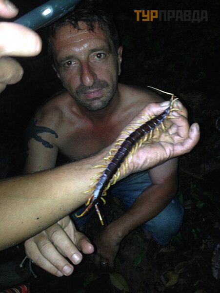 At the parking lot there was a night prey: a chic specimen of a centipede. Was caught by the stream, after dusk. Such a thing, if it bites, will not seem a little: three or four days of hellish pain at the site of the bite and high temperature is provided.