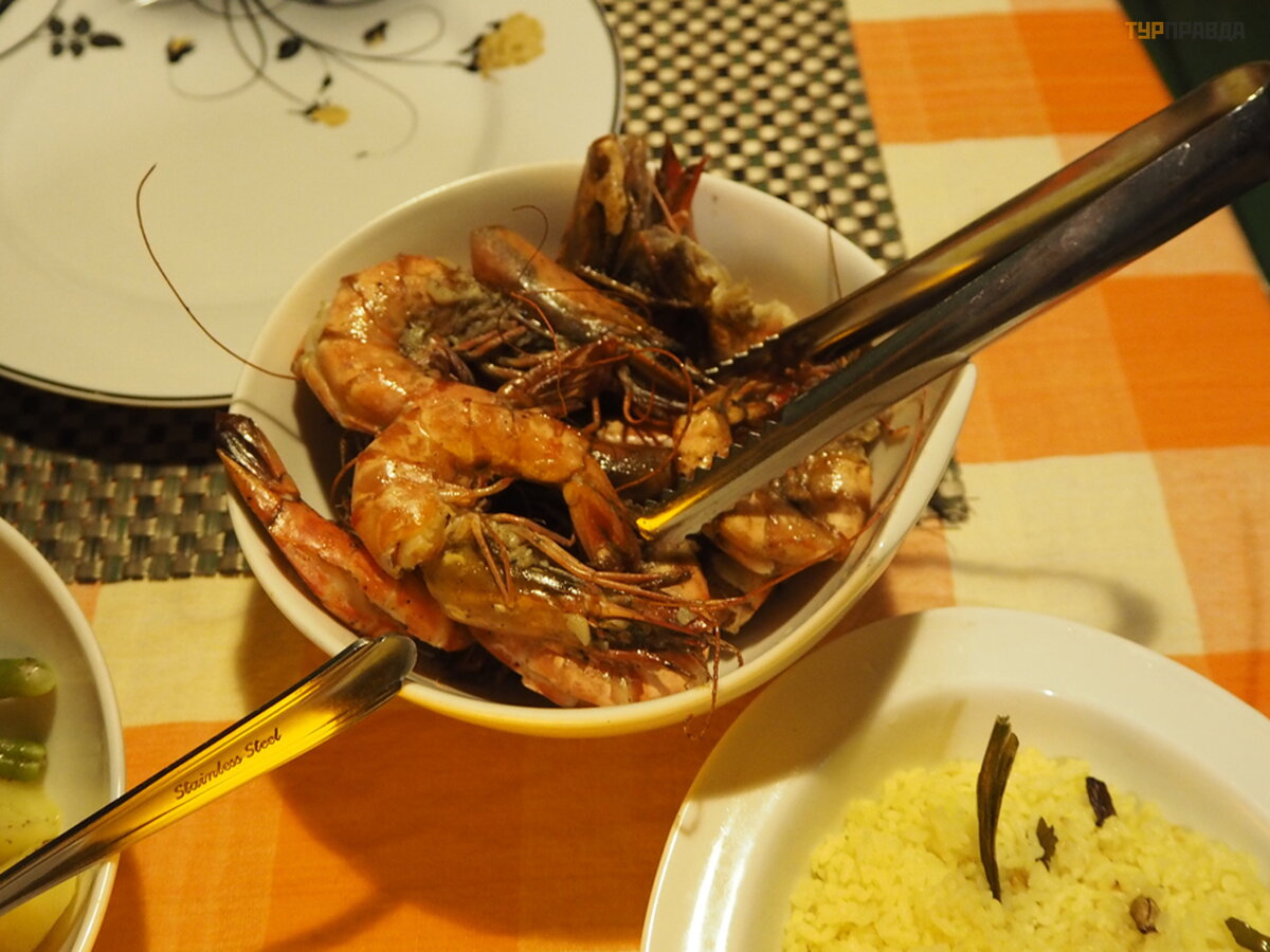 Amazed by the tour, we returned to our house, where we were met by a lady with a plate of huge shrimp and offered to cook them for dinner.