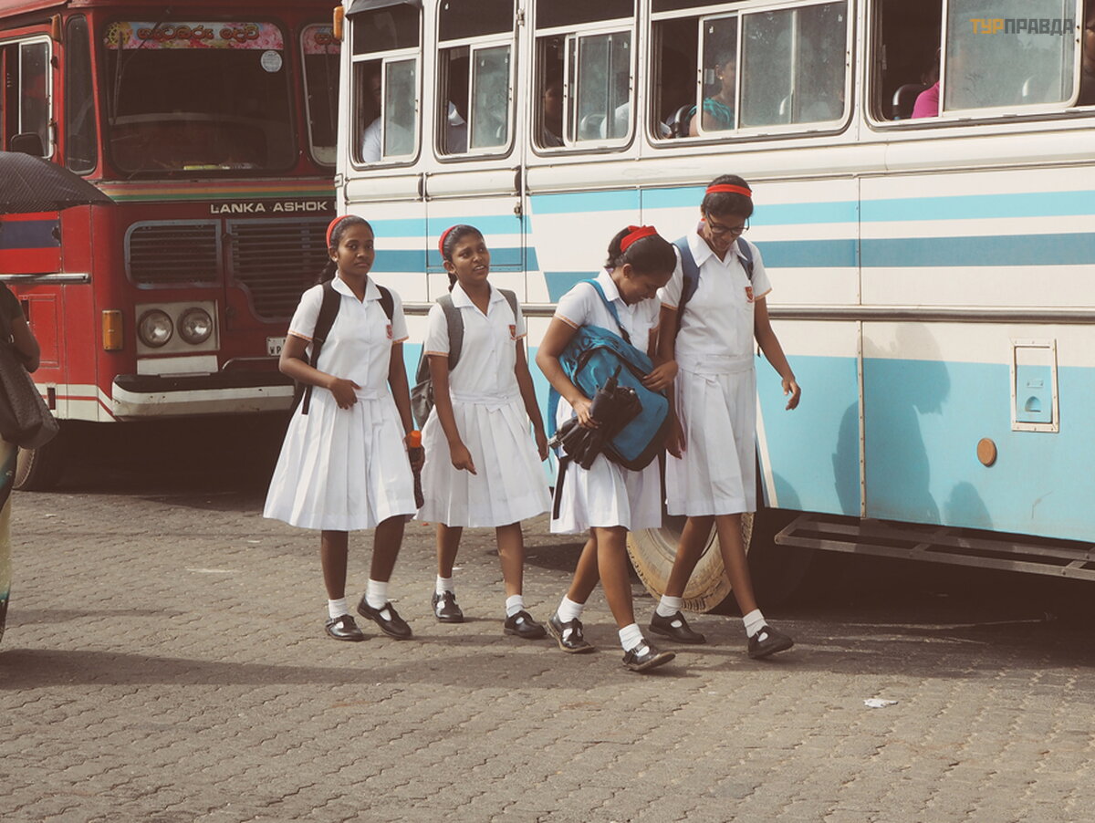 We walked slowly through the ancient walls and streets of the city. They saw schoolchildren and a private school. Traditionally, schoolchildren in Sri Lanka wear white school uniforms.