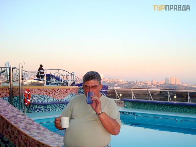 Somewhere in the afternoon, our wanderers appear, they said that they walked fairly well through the territory of the cargo port, they almost returned, as the wind doused some kind of chemistry, but at the exit from the port they bargained for a taxi (70 euros) and drove along sights of Casablanca. They were lucky that the driver spoke some English and served as an interpreter and guide. In the old city, we bought spices and coffee, souvenirs, drove along the Embankment to the mosque (it is the largest in the world), did not dare to enter the Atlantic Ocean (waves) and returned. Their resume - this walk could have been dispensed with, especially when they saw how we were sybaritizing (we had it !! ). Yes, by the way, and many Ukrainians could not get off the ship, because they thought that in Morocco, as in Egypt, they would stick a stamp at the exit, and then they needed a visa from the consulate. I saw how ours on the gangway made a scandal. This is how a long day in Casablanca passed. What a pity that we did not have enough time in Barcelona