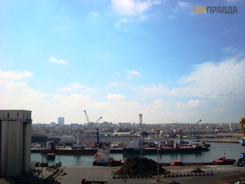 Impressions of Casablanca started from the berth of the cargo port, where our handsome ship moored, where coils of wire, sectional metal, rolls of sheet steel lay. In the corner stood several buses and a dozen taxis. And the coolest thing, on the other side of the pier, some ship was loaded with scrap metal. The rumble is worth it! Amazing parking lot! I didn’t plan to particularly walk around this city, somehow I ate some Arabic flavor recently back in Egypt, but I thought about walking along the embankment to the mosque and tasting the water of the Atlantic Ocean. Seeing the reality, the desire began to disappear. We did not plan ship excursions - this is Marrakech - 125 euros / person, Rabat -121 euros / person. There were no transfers to the embankment, taxis broke the price - 200 euros per car. In short, our company split up, four stayed on the ship to sunbathe, swim and relax until the Captain's cocktail, two went on foot to explore the expanses of Casablanca. On the Sandek , it’s great, the sun is already grabbing the skin well, it’s calm, comfortable, the water in the jacuzzi is 35-40 degrees, in the pool it’s less, but also good, it cools. I calmed down, thinking that in the pool there was outboard water, and this was also the Atlantic. The mosque is perfectly visible from the ship. The surf of the Atlantic Ocean, rather rolling, breaks on the rocks.
