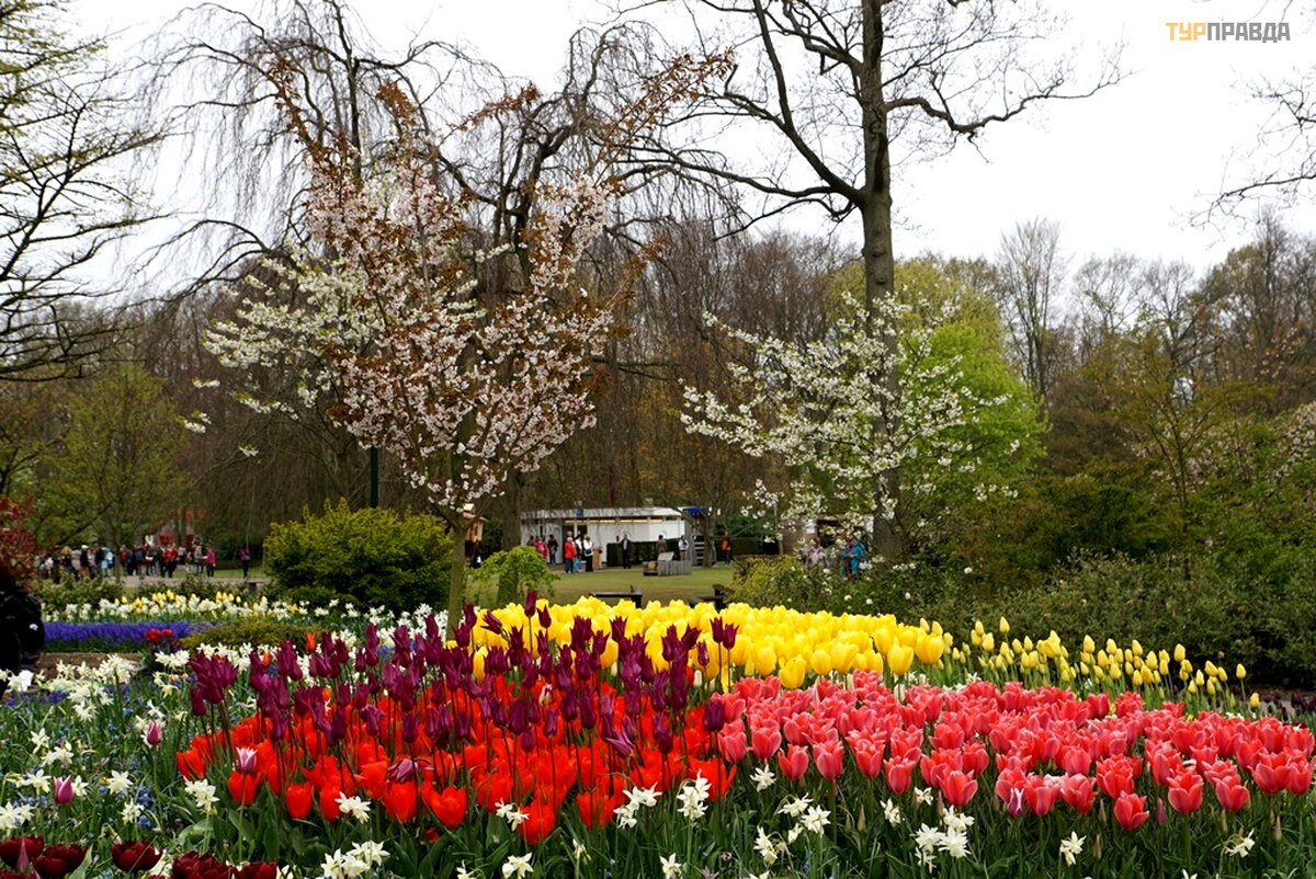 Surprisingly, there were almost no Chinese. Most of the organized tourists arrived on buses, so they rushed through the park in a crowd, like mad, glancing quickly around. I had too much time, I was in no hurry, and I carefully examined the flowers. What are they very beautiful. Some have already faded, while others have not yet hatched from the buds. Came across a shelter for some pets and birds. All of them are not at all afraid of people, and they are so friendly, even horned. There are many ducks and swans in the ponds. Fruit trees are blooming. It's hard to believe that the park is open only two months a year. I paid for parking for 6 euros via the Internet, but I was never asked for tickets at the parking lot. I went out of the park twice, and they put a stamp on my hand. So I returned to the park without any problems. Plenty of snacks throughout. It has rained several times today. Cool and windy. I left the park at 17:00.