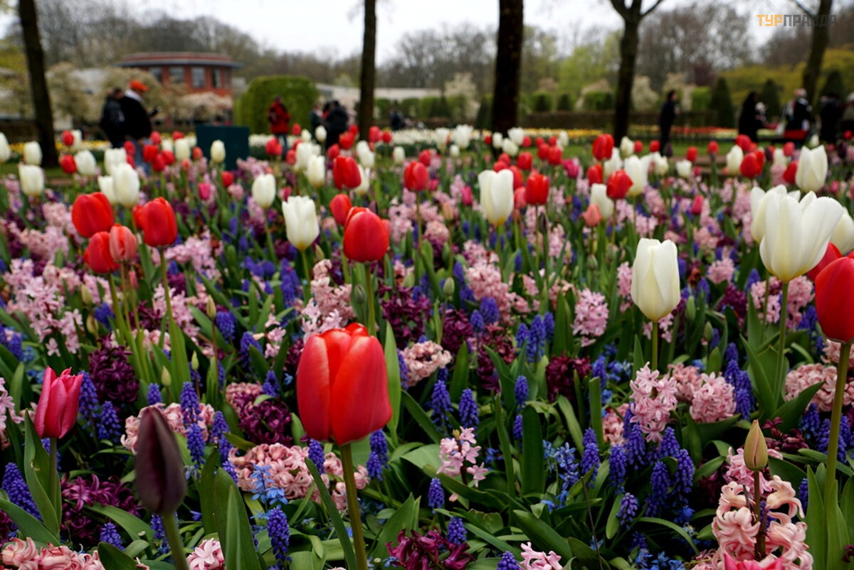 In the first story, I showed only the first particle of the Keukenhof park. It is so beautiful that I wanted to see everything in detail and photograph. The only thing that prevented the huge mass of visitors to the park. The adjacent lawns around the park were completely filled with cars and campers. I didn’t see a single car from Russia in the parking lot, but I heard Russian speech in the park. On Friday it was still tolerable, but today on Saturday 04/22/2017 there were a lot of tourists. It was difficult to photograph. It is better to take pictures, of course, lying down from eye level, but it was not possible to lie down on the lawn due to dog waste. This really spoils the atmosphere of the park, especially when they bark at each other and at people, run into the flower beds. The second scourge in the park is smokers. Behind the figure, like men, and in front you look, like a woman. Again I remember our beauty. All the edges of the flower beds are trampled along with the flowers. It's a pity. Still, Europe, which considers us wild, but themselves...