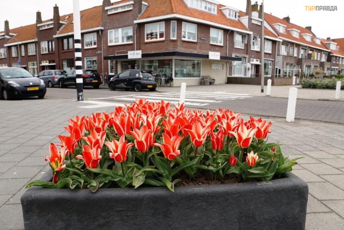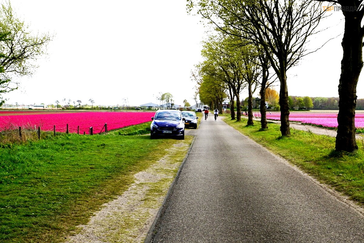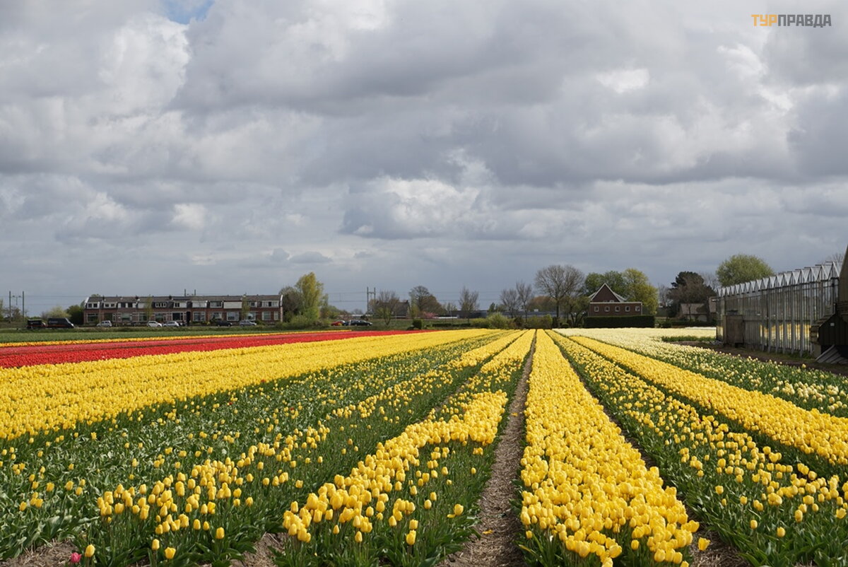 After visiting the Keukenhof flower park, I decided to take a ride on the west coast of the Netherlands to the town of Noordwijk. It is only 36 kilometers from Amsterdam. Little country. You will not have time to pick up speed, and already a new city. The roads are great. Road signs sea. Why do they have more cyclists or motorists? Every resident has a bicycle, and most have a car. Families have several cars. Mostly German brands. I did not meet tourists from Russia and Ukraine. Apparently, they are waiting for heat, and the cold here is decent according to my southern concept. Rain and wind, it's easy. The city is located almost in the south of the country, on the very shore of the North Sea. Having traveled all over it in a short period of time, I wandered along the sandy beach with houses. Interesting and beautiful. Really, when do they bathe? On the way back I drove along the fields of tulips. They look beautiful.