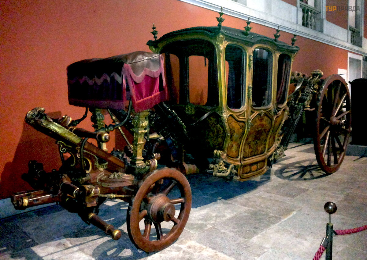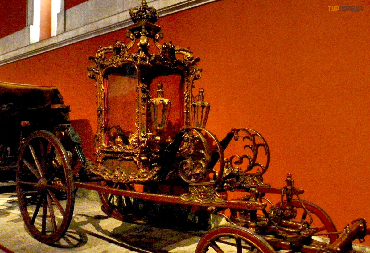 The oldest and most valuable item in the collection, dating from the end of the 16th to the beginning of the 17th century, is the carriage of King Philip II of Spain, on which he came to Portugal in 1619. The carriage is not only the oldest, but also the most modest. Fashion has changed - the design of the crew has also changed. Over time, the carriages became more luxurious and refined, velvet, gilding and mahogany trim appeared, they began to be decorated with statues and candelabra.
