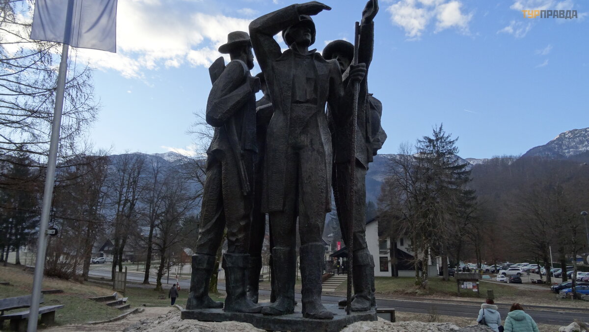 The first lake on our way is Bohinj. Lake Bohinj itself is of glacial origin, located at an altitude of 525 m above sea level. Bohinj is the largest lake in Slovenia, its area is 3.18 sq. km, depth up to 45 m. Bohinj was the largest metallurgical center in Slovenia! This sculptural group of people reminds of this: