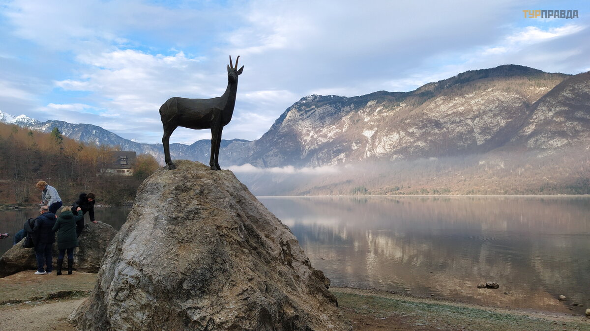 And again gallop - we run to the monument to the mountain goat. This monument is not just some unknown mountain goat. There is a legend in Slovenia about a wild white chamois that had golden horns and a garden with a treasure trove on top of Triglav. Once a not very good and very greedy man wanted to steal these treasures and shot Zlatorog. However, an amazing flower grew out of the spilled blood of the chamois, bringing life back to the graceful animal. But the fate of the hunter was sad. Zlatorog, by the way, is the emblem of the Slovenian beer "Lashko".