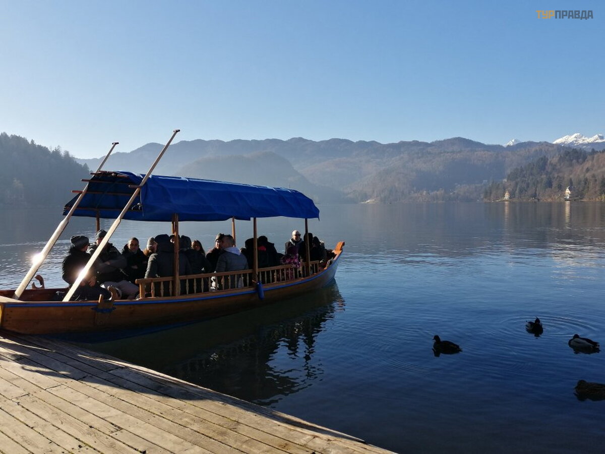 Pletni are small covered boats with rows of seats on both sides. Two options were proposed: 1) a castle; 2) an island on a boat. We chose the castle, it’s a little cold on the boat, and we didn’t regret it at all - the views are fabulous. In frosty winters, the lake freezes and a skating rink opens on it.