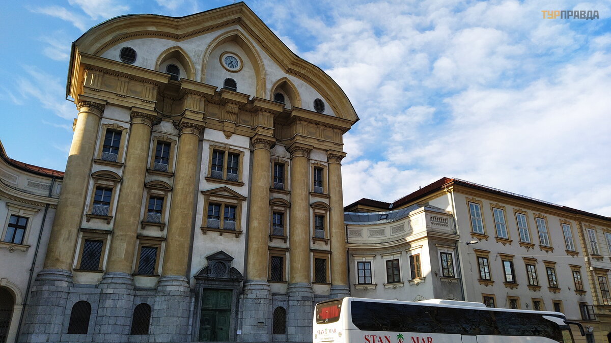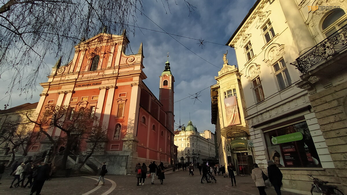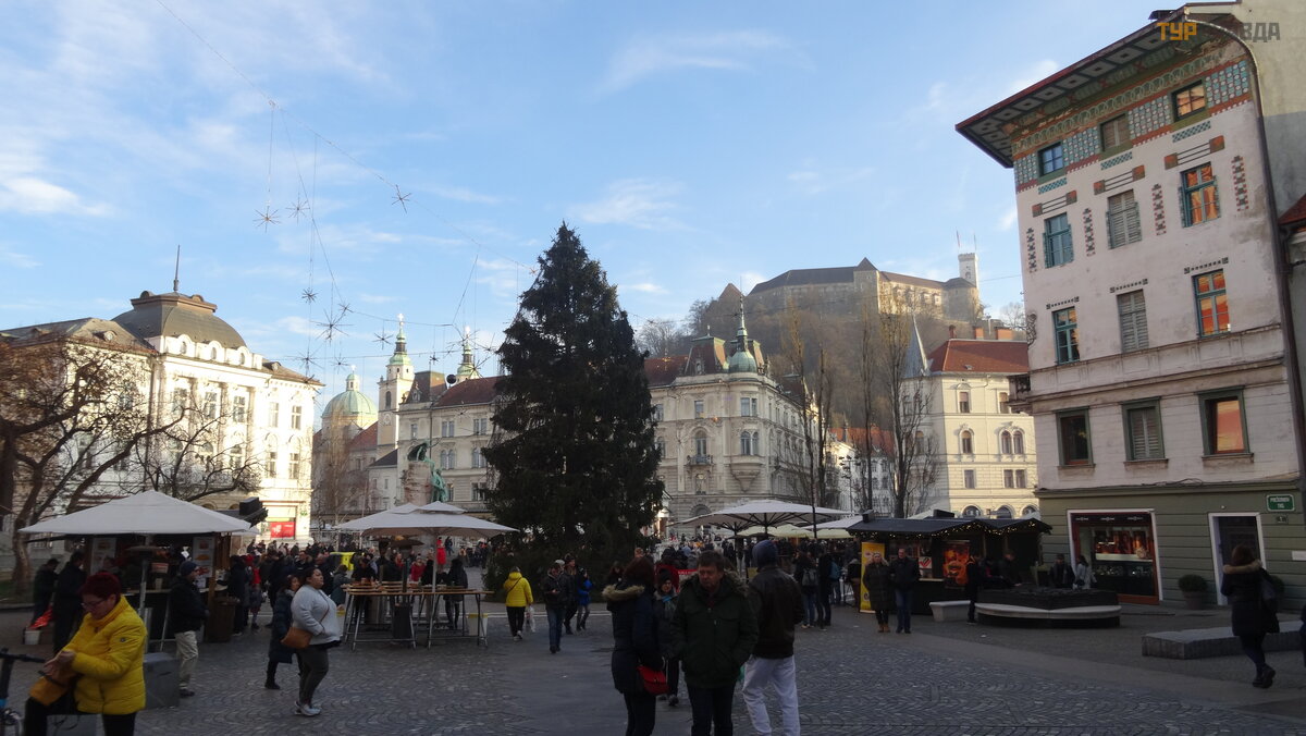The group landed on the square in front of the Ljubljana Castle ("Ljubljana Castle"), they did not go up to the castle, again, due to lack of time. There was already a stage on the square, music was playing, and everything reminded that today was December 31st.