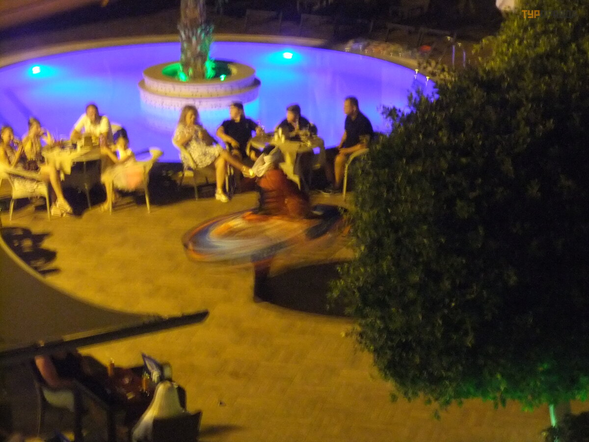 We didn't go, but watched the action from the balcony. Men in luminous skirts danced there. Izv. for the quality.