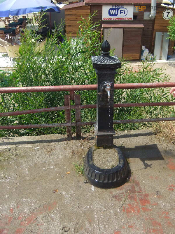 And it's just a delight! Antique cast iron faucets. They are 4 years old. There is no drain at the bottom. Water overflows. And in this bath there is always water for stray cats and dogs.