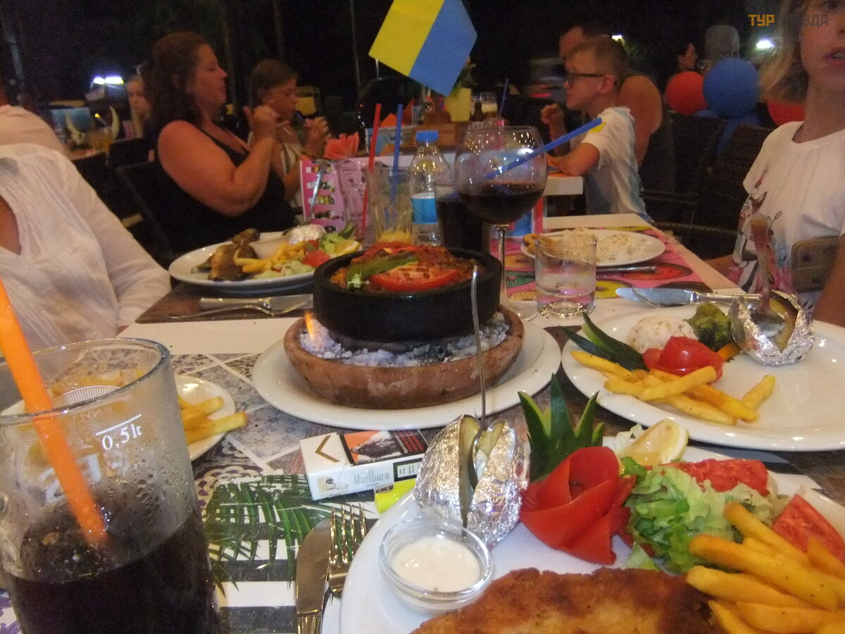 There was only breakfast at the hotel. Quite worthy, but this is not enough. Since the room had a kitchen, you could cook on your own. Not often, but we took advantage of this opportunity. There was a huge shop next to the hotel. Either TESTO or PESTO. I do not remember. My friend and I went there on the very first day, were stunned by the prices and began to collect food and drinks in the cart. An attendant approached us and said that only Turkish entrepreneurs can shop in this store. Well, what's the matter? We registered as Turkish entrepreneurs and bought a lot of things there. Let's say a box of milk cost the same as two bags in a regular store. The same with beer. The same with Coca-Cola. But self-cooking on vacation is wrong. And of course we went to restaurants. We were lucky. On the first day we wandered into a fairly expensive restaurant called Viking. It was great there.