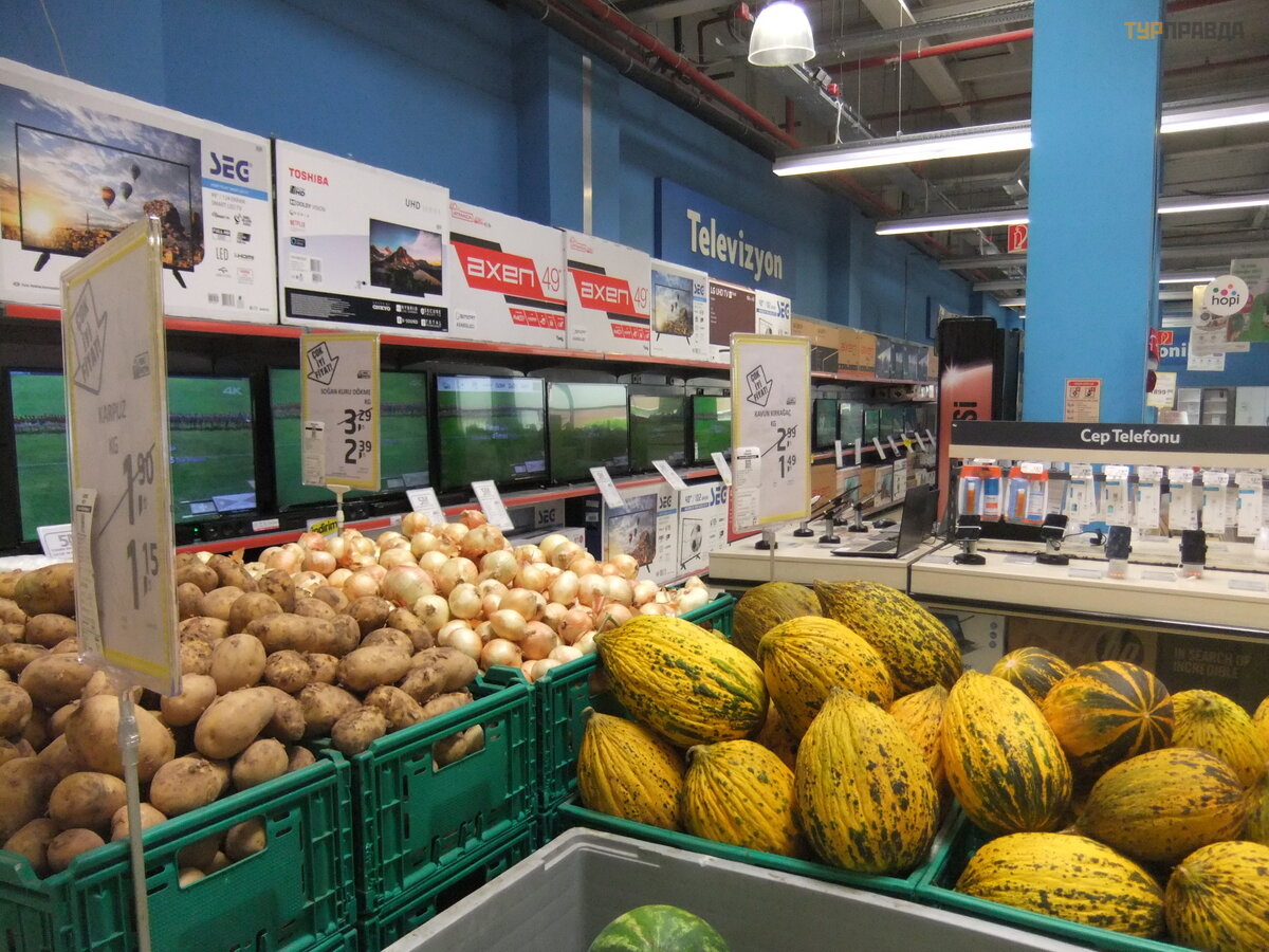 Next, just a few photos. Rudiments of old sweet Turkey. In the supermarket, potatoes and onions are side by side with iPhones and TVs.