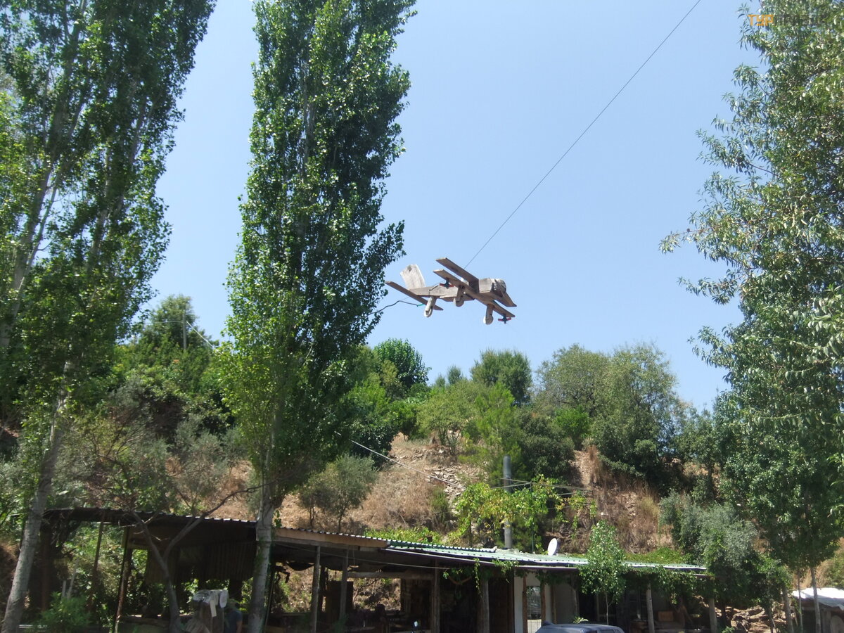 Just in the mountains, this wooden plane hung over the road and water flowed from it onto passing cars, cooling them.