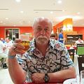 Обед оказался скудным и в следствии однообразным. Как выяснилось позже, что в отеле нет своей кухни и все что поступает на стол это заморозка на каком то комбинате. Размораживается в тепловых шкафах и подаётся на стол в горячем виде. Чёрствые булки обрабатываются паром и подаются как свежие. Овощи моются и даже некоторые режутся в отеле, все остальное в лотках и завернуто в фольгу. Готовится только омлет из готовой яичной смеси, иногда жарятся оладьи и делаются готовые булки с сыром. На просьбу пожарить яичницу-глазунью, ответили, что яиц как таковых у них нет, только омлет и готовые варёные яйца (С2). Фрукты представлены зелеными и иногда красными яблоками, незрелыми сливами и иногда нарезкой из апельсинов. Из бахчевых культур арбуз, неплохого качества и дыня, еще не созревшая.