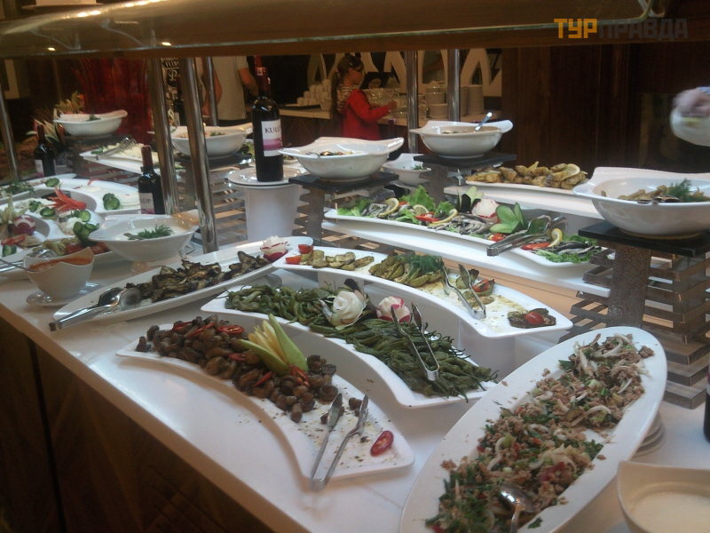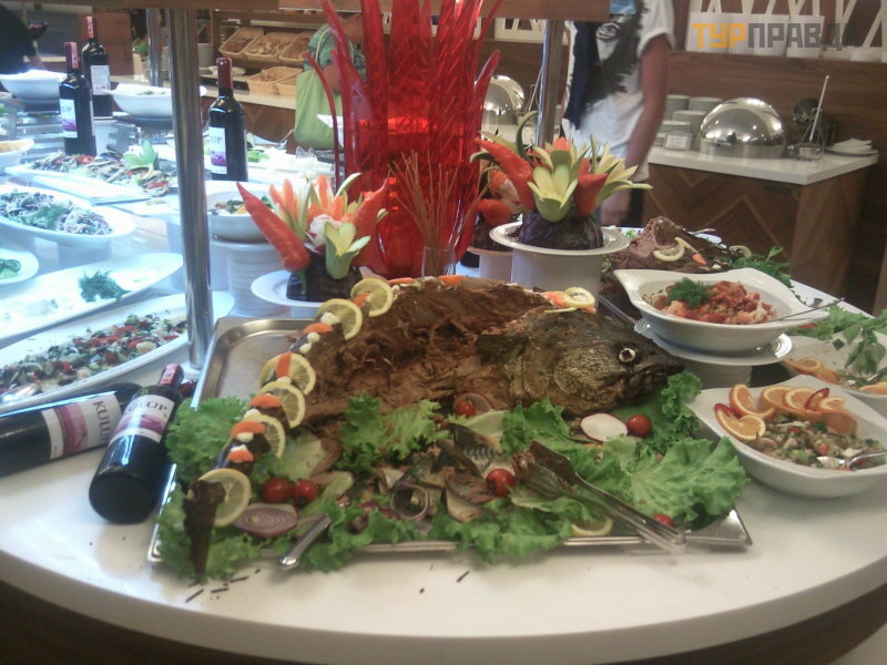 While we were sitting in A la carte, music and singing could be heard from the main restaurant. I immediately understood - Turkish night! And leaving a tip to the waiter, we also visited for dinner!! ! There were various treats and some cutlets at the entrance. Honestly, I did not understand what they were from, but it was delicious! While we were sitting, we saw the administrator and the waiter from A la Carte. They smiled at us in surprise!!!
