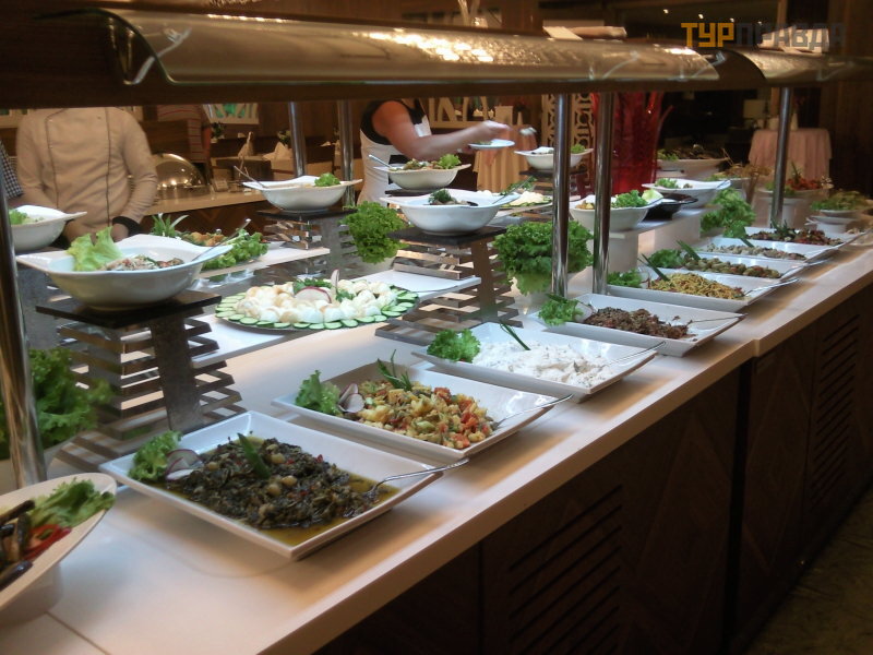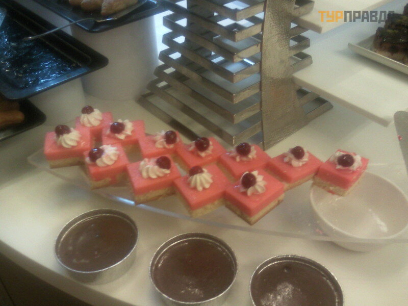 The minibar was free, with drinking water, cola, juice, and replenished once a day. In the hallway, by the light control panel, there were “do not disturb” and “clean number” buttons. I have not seen this yet, but progress does not stand still! Apparently, there are more and more electronic systems for hotels. By the way, my neighbors had a sign with a crossed-out cigarette near the door, apparently 100% non-smoking rooms. After reading various booklets, I began to study nutrition: