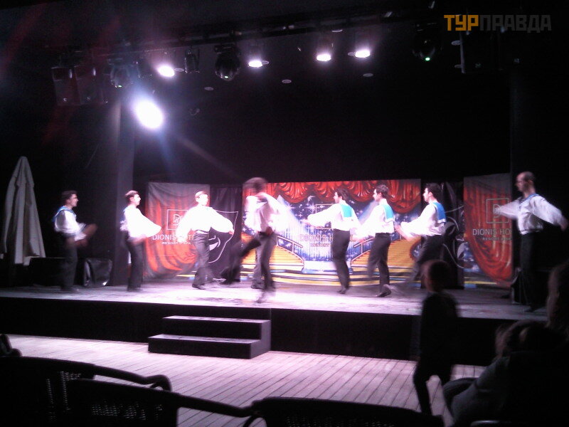 Animation, as I said, was performed on a stage near the beach. On my first visit, I really regretted not taking my camera with me! The magician performed, showing incredible tricks to the song "Pitbull and Marc Anthony - Rain Over Me". And in the following evenings we were entertained by a certain dance group. There were performances of “Sirtaki”, “Yablochko”, Indian dance, Scottish, belly dance, and unexpectedly a sword fight with shields, and with sparks... I immediately thought - could the Fires of Anatolia team be distributed in their free time to nearby hotels? I asked this question later to the animator, or rather asked the name of the team, to which I received an answer that was not related to the “Fires of Anatolia”. And there, who knows! The animator even promised to give me a CD the next day, but I forgot about it, to be honest.