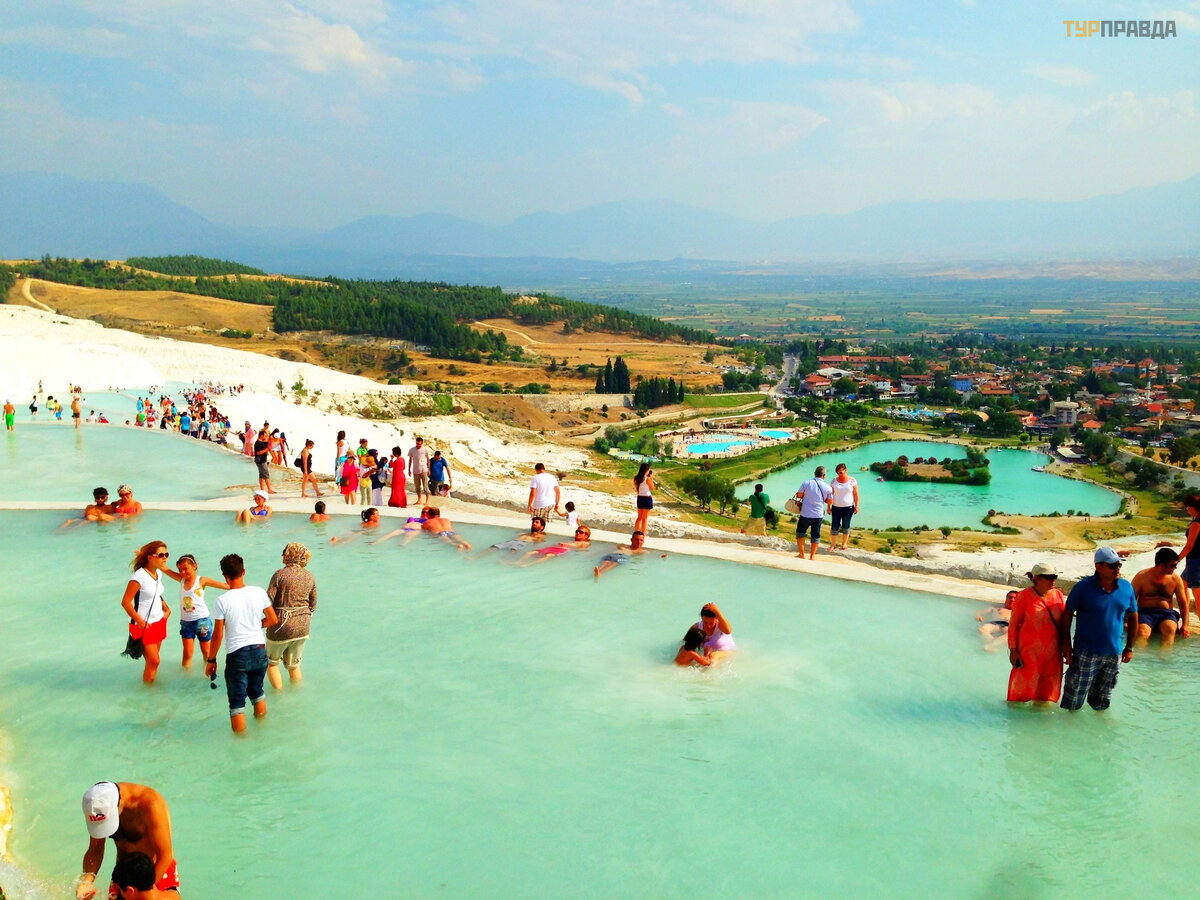 Separately, I would like to talk about Pamukkale. The tour is free, it is for the whole day (and even the night, because you stay overnight in a hotel near a natural monument). The tour goes like this. Early-early in the morning (around 6-7 in the morning, while everyone gathers at the bus) you get on the bus and drive for 4 hours. It may seem boring, but a guide comes in handy here. Our first spoke about how Turkey was formed, what ups and downs Christianity went through in it, how it all makes friends with Islam - in general, interesting. And then there was another funny block: we were told from the Turkish Family Institute. How they get married, choose each other, who pays what, what gifts are given to women as a dowry, how a modern Turkish house is arranged, etc. It was very interesting with our guide: good Russian with a slight accent and lots and lots of jokes!