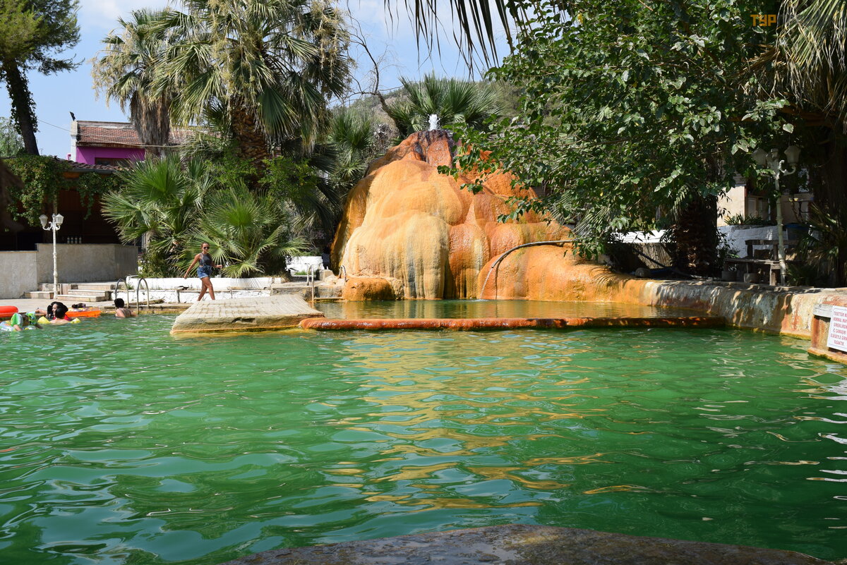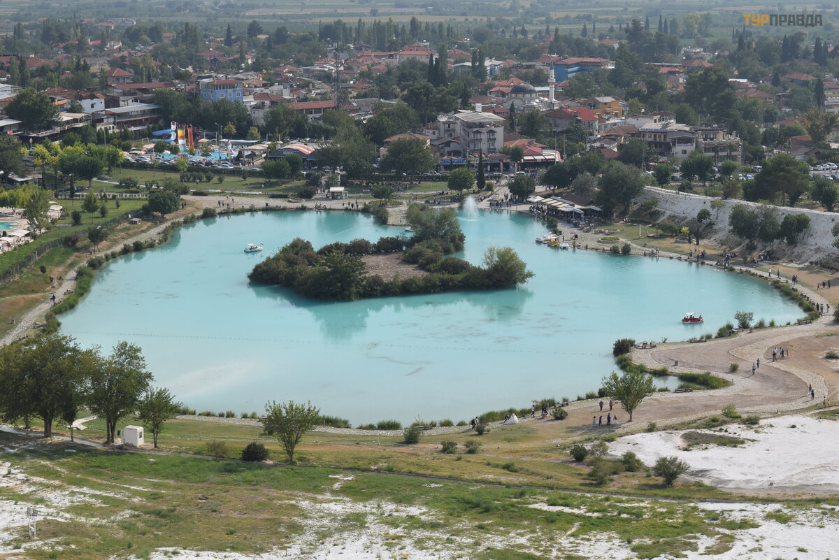 but Olya is like a kite. Where we are, there she is, so that they don’t ask, God forbid, without her. Lesha asked her if they could sell something separately, to which she lied that she didn’t. We were not hungry, we took food with us, but the fact itself! So - she told everyone on the bus - that SHE PLANS to be in Pamukkale at 14, then at 15... we got there at 16.10!! ! On the way, she still steamed hot red springs for us... and she also said, if there are more people who want to go there, then we will go, no, we will not go. But everything turned out, as, indeed, everything she said was a lie! At the same time, she said several times that she really likes to swim there, more than in Pamukkale)). Funny. Let's go. . . OOO. Pamukkale is visible. And then we quickly pass it and find ourselves in the town behind Pamukkale, on this hot spring... By the way, she spun people there too for 13 euros per person... well, we went in, we thought maybe everyone would swim there, except us... ahh. . it wasn't there. Ukrainians did not manage to untwist a single one for this.
