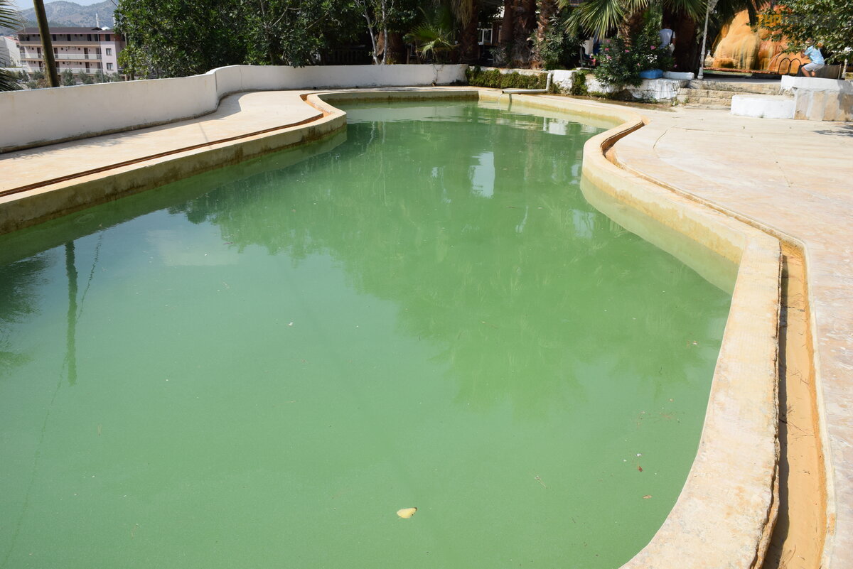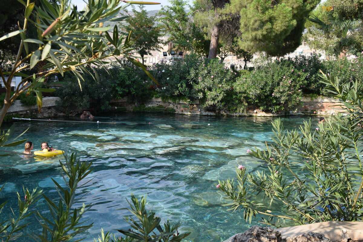 in front of the entrance to the Antique pool, also known as Cleopatra's pool.