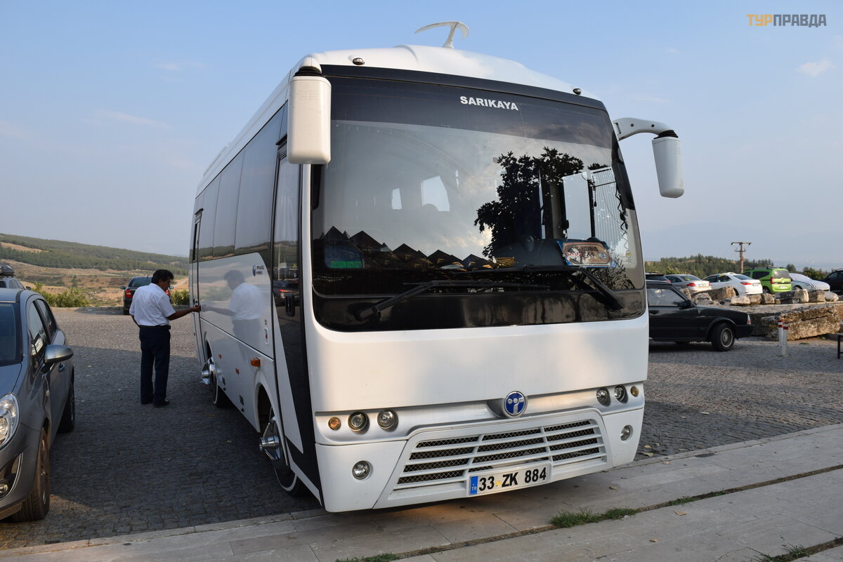 There is a Russian-speaking Azerbaijani Ruslan there. I found out everything, asked around, said there was no lunch, there would be dinner, the entrance to the territory of Pamukkale is INCLUDED in the price! Well, Cleopatra's pool for an additional fee, if we want. I also clarified whether we will be with a Russian-speaking group or not? (although not fundamentally), he said, yes, yes, of course. Russian-speaking guide . . oh . . if we knew what kind of guide would be! ))). And she also asked if they would pick us up from Side? Yes, yes . . was the answer! . Why am I all this? And then it will be clear. We went to the hotel for an advance payment of 20 dollars. We returned, the guys were sitting with him and also agreed on a trip to Pamukkale, as it turned out they were from our hotel . . Aleksey and Ira, we survived this terrible day with them! ) They gave the deposit, asked again what and how, left, but the feeling of something that didn’t add up did not leave. But the choice has been made. So, Sunday morning. They were supposed to pick us up at 6 am. 20 minutes late. Well, this does not happen to anyone...