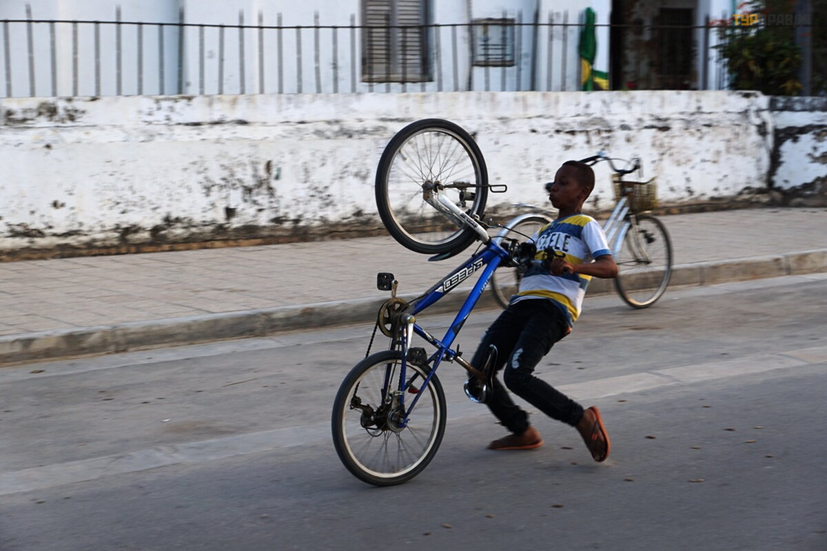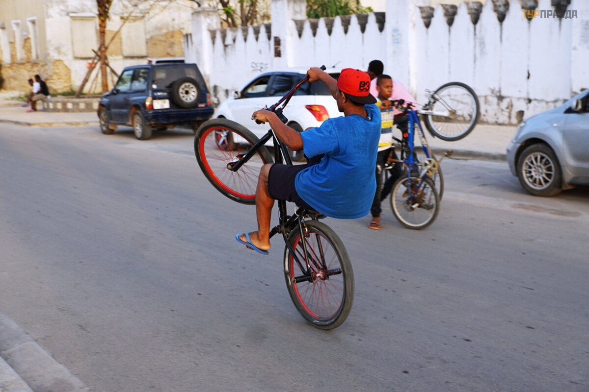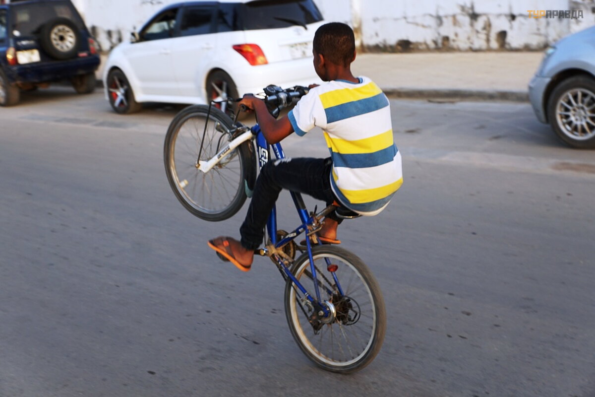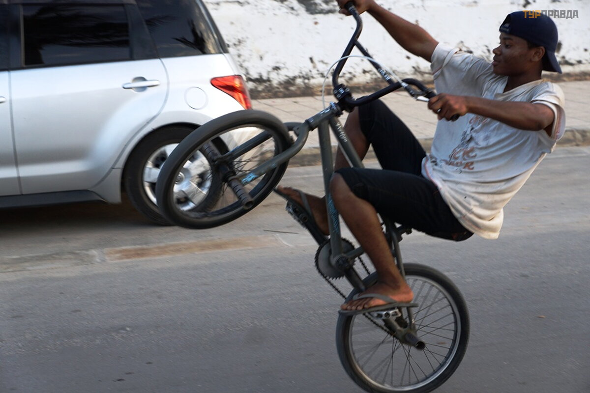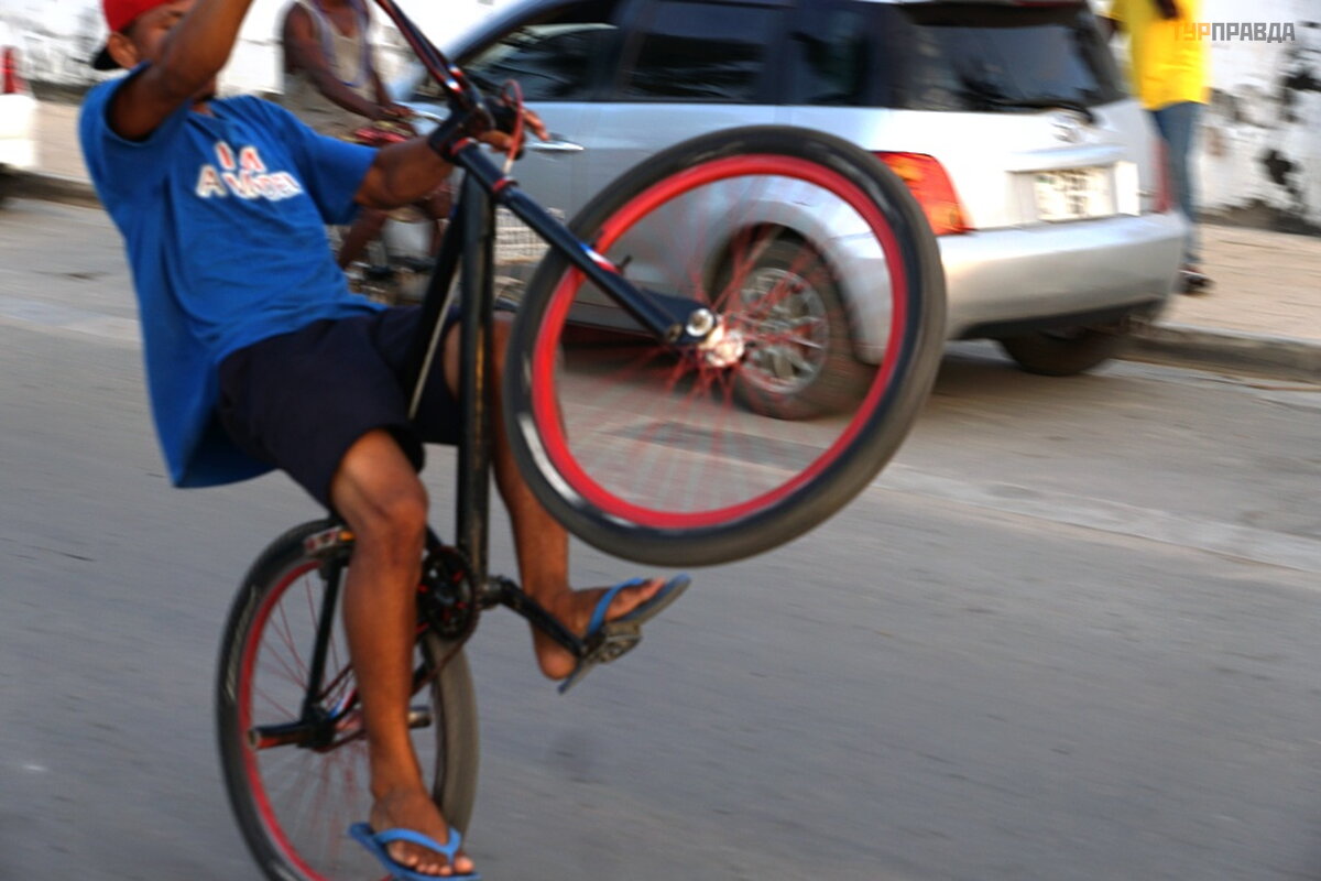 I could not pass by the guys who tripled various tricks on their bikes right on the road near the embankment next to the parking lot. If any driver still drove into the parking lot, then the guys drove him away together. When they saw that a white tourist was photographing them, they began to come up with something new every time. They simply had no other spectators besides me. For me, it was also fun and relaxation.