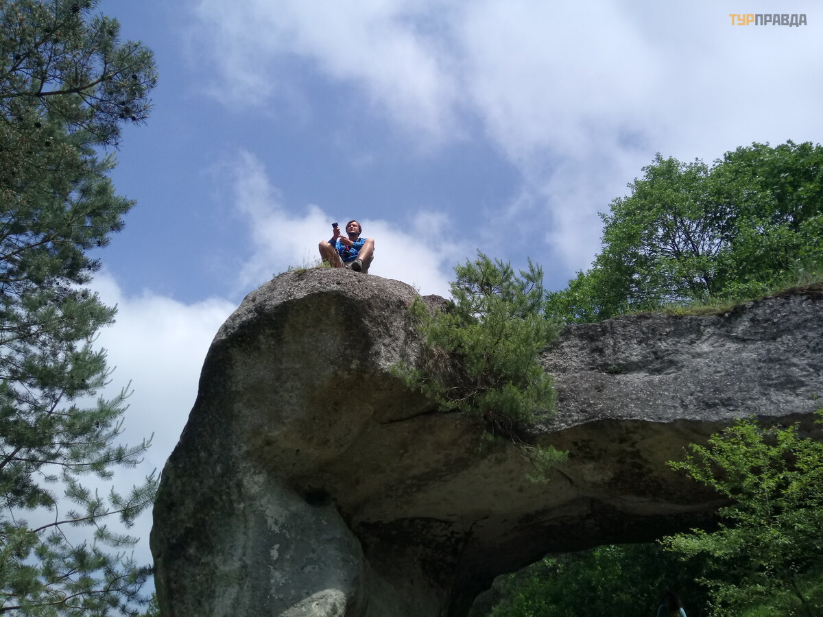 The place of sacrifice, which shows the drains for sacrificial blood, the steps to the place where the image of Perun stood, and the pedestal, which shows the symbol of the three elements: fire, water, air - all this is visible right next to the road. And to the sanctuary you need to get to the village of Iliv and crawl up a steep hill. It was very slippery and our feet tried to get up from time to time, but we climbed up and looked at this sanctuary. I'll just leave a photo here to assess the scale.
