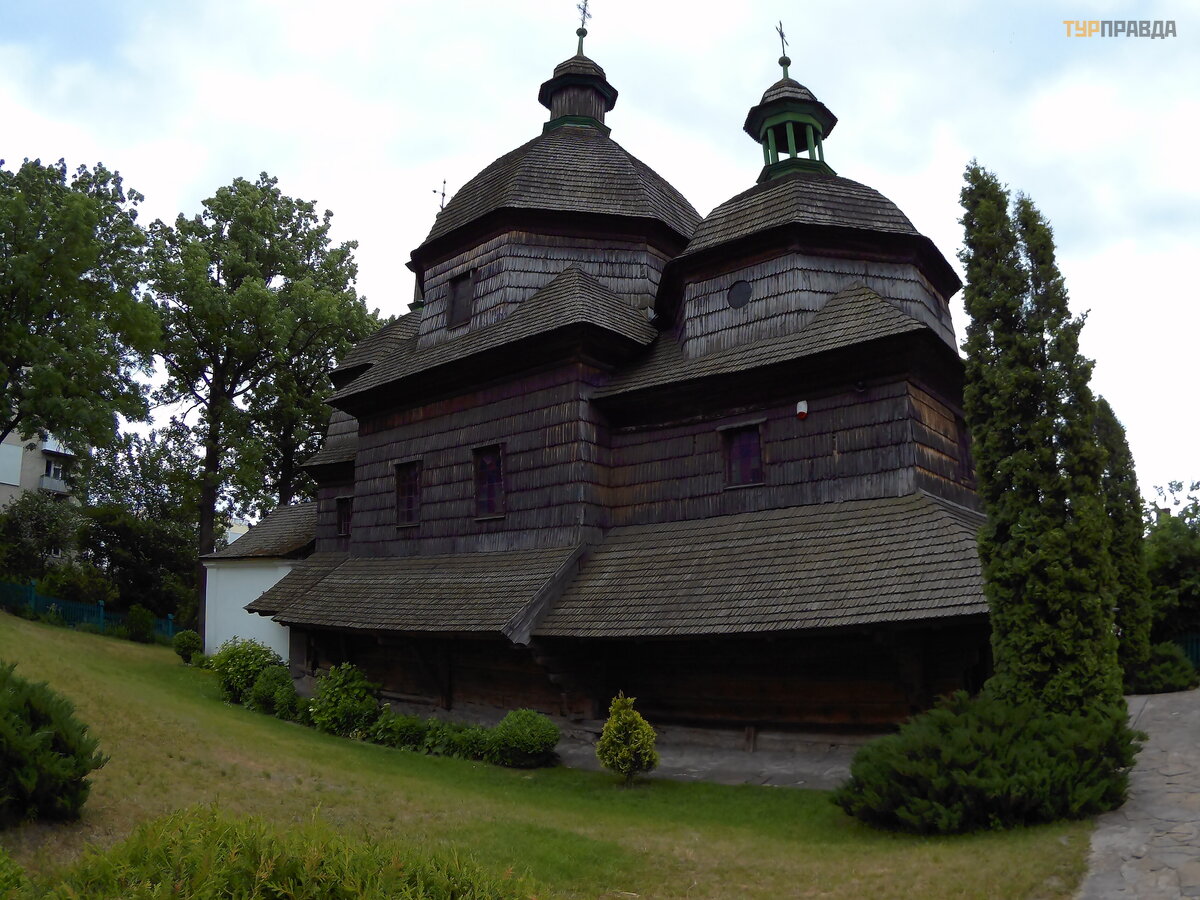 Our tour started with a beautiful wooden church - Trinity. It was built in 1720 and is now a UNESCO World Heritage Site. We have already seen a similar church, slightly larger, in Drohobych. But here the entrance is free.
