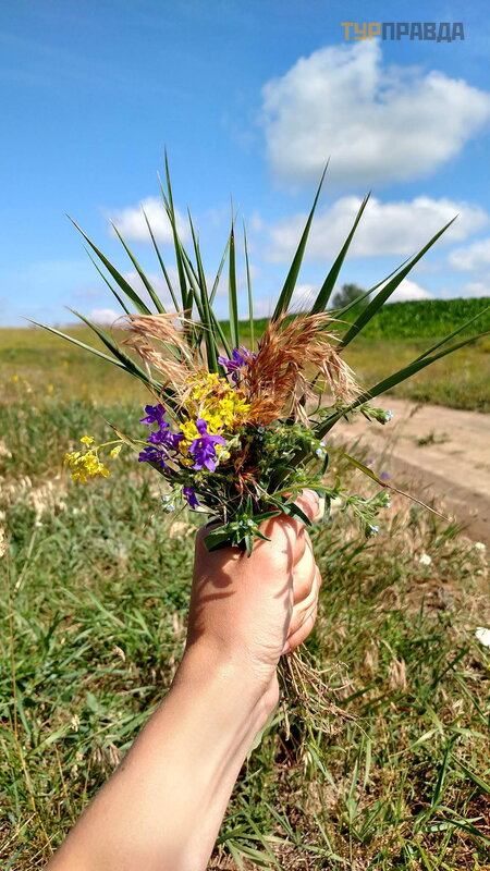 We rode through hard swamps, which can be seen on my big one. I made bouquets along the way and ate cherries.