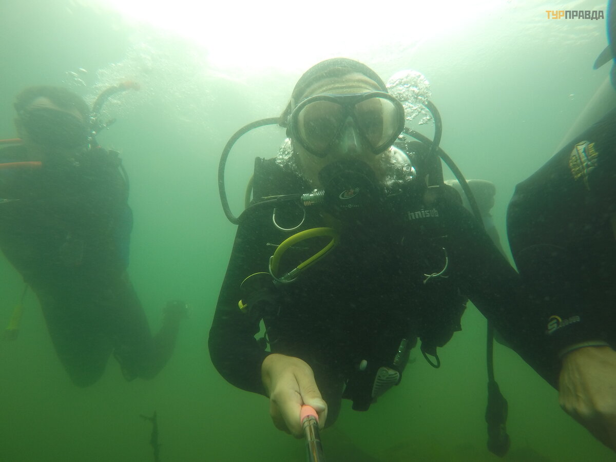 After that, we conducted a joint underwater instruction, where we tested situations when the valve falls out, tried to sit on your knees, situations when water falls into the mask.
