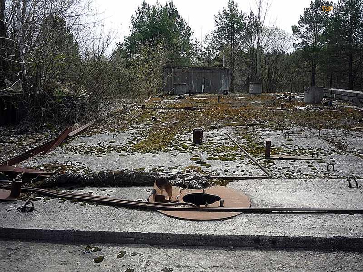 It looks like there was a site for the processing or storage of liquid waste on a hillock. Huge underground reservoir. Rather, the whole network. Pipes and manholes come out of them. The reinforced concrete booth at the top is empty. Only broken glass is lying around. Not simple with radiation protection. Yellowish and ten centimeters thick.