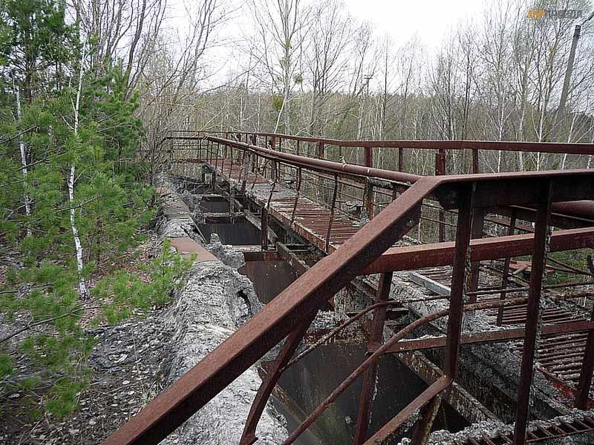 Finally, the joyful passengers return to their seats and the caravan continues to move. But soon stop again. The first object of the exclusion zone is the decontamination site. The same asphalt road departs from the road deep into the forest. In turn, there are dead ends from it.